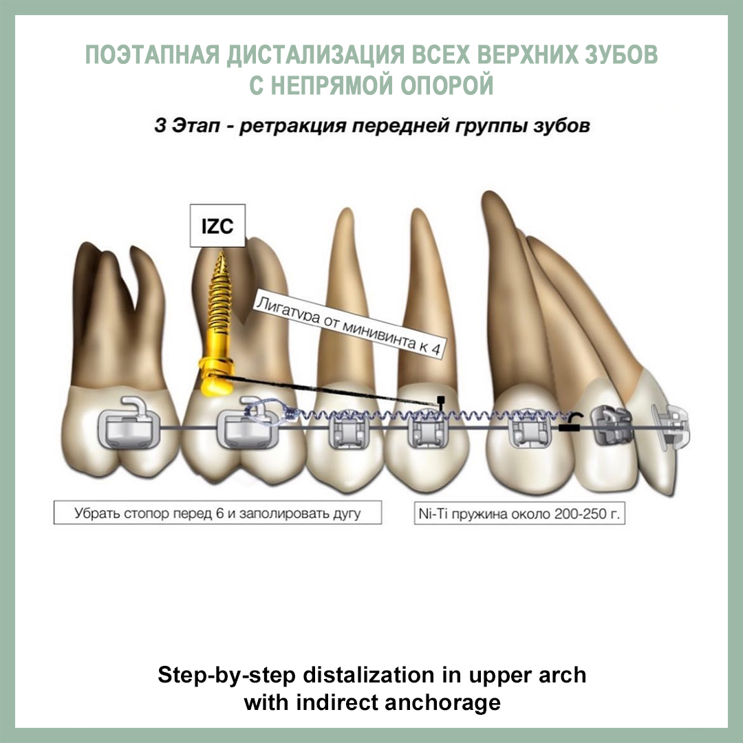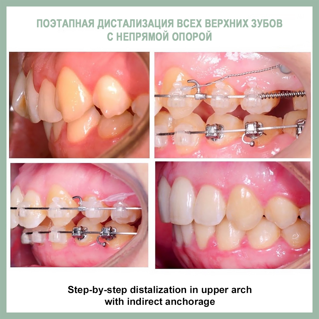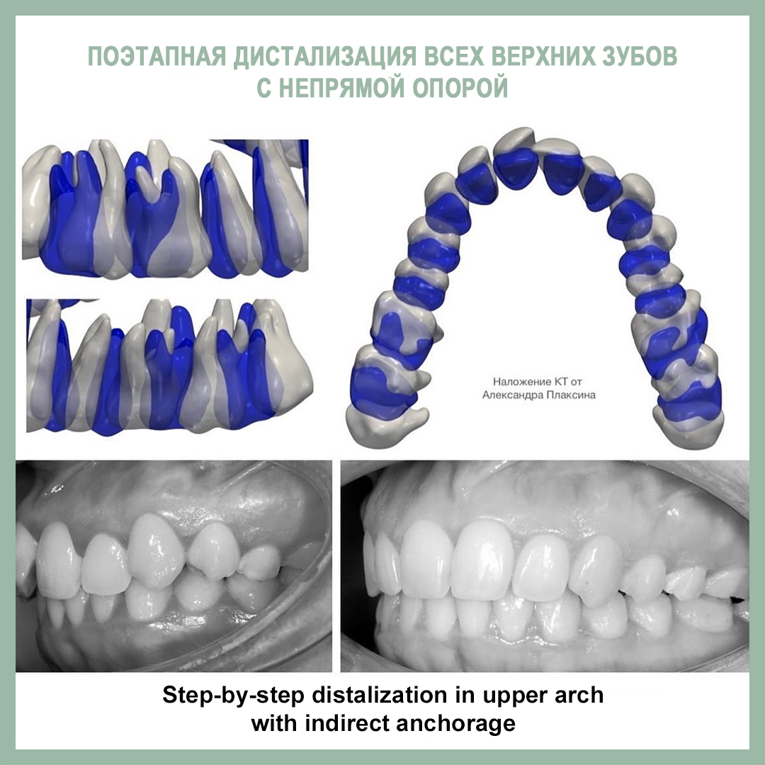Подробно о всех вариантах дистализации мы говорим на семинаре по минивинтам. Здесь же - пример клинического случая с такой механикой от нашей команды из клиники «Полный порядок на Международной». Лечащие врачи - Иванов Алексей, Мазурина Анастасия. Значительное улучшение класса за счет дистализации около 3-4 мм.