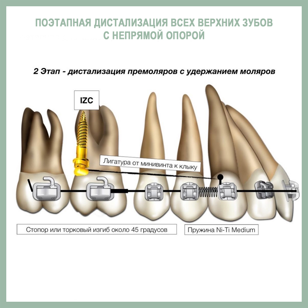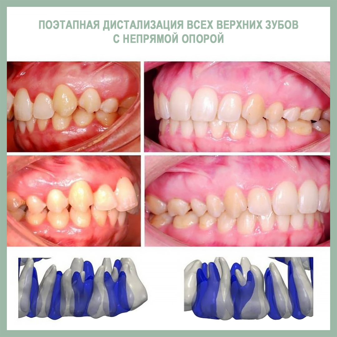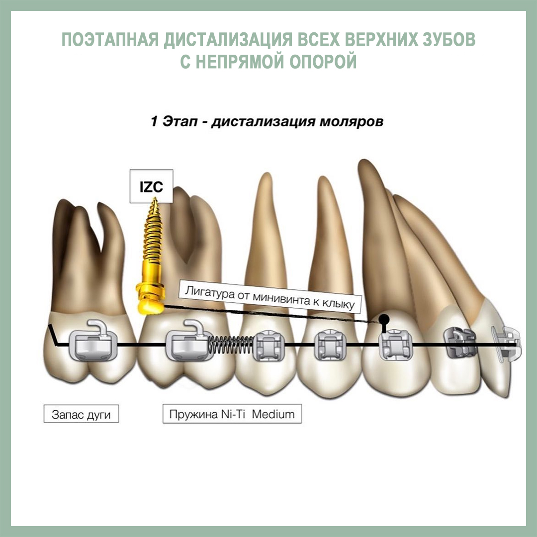 Подробно о всех вариантах дистализации мы говорим на семинаре по минивинтам. Здесь же - пример клинического случая с такой механикой от нашей команды из клиники «Полный порядок на Международной». Лечащие врачи - Иванов Алексей, Мазурина Анастасия. Значительное улучшение класса за счет дистализации около 3-4 мм.