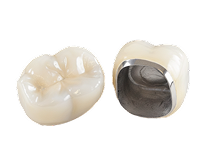 Это изделия, которые заменяют поврежденные или утраченные зубы. Их основание сделано из металлических сплавов, а внешнее покрытие – из пластмассы. Срок службы зубных коронок из металлопластмассы составляет до 3-5 лет.