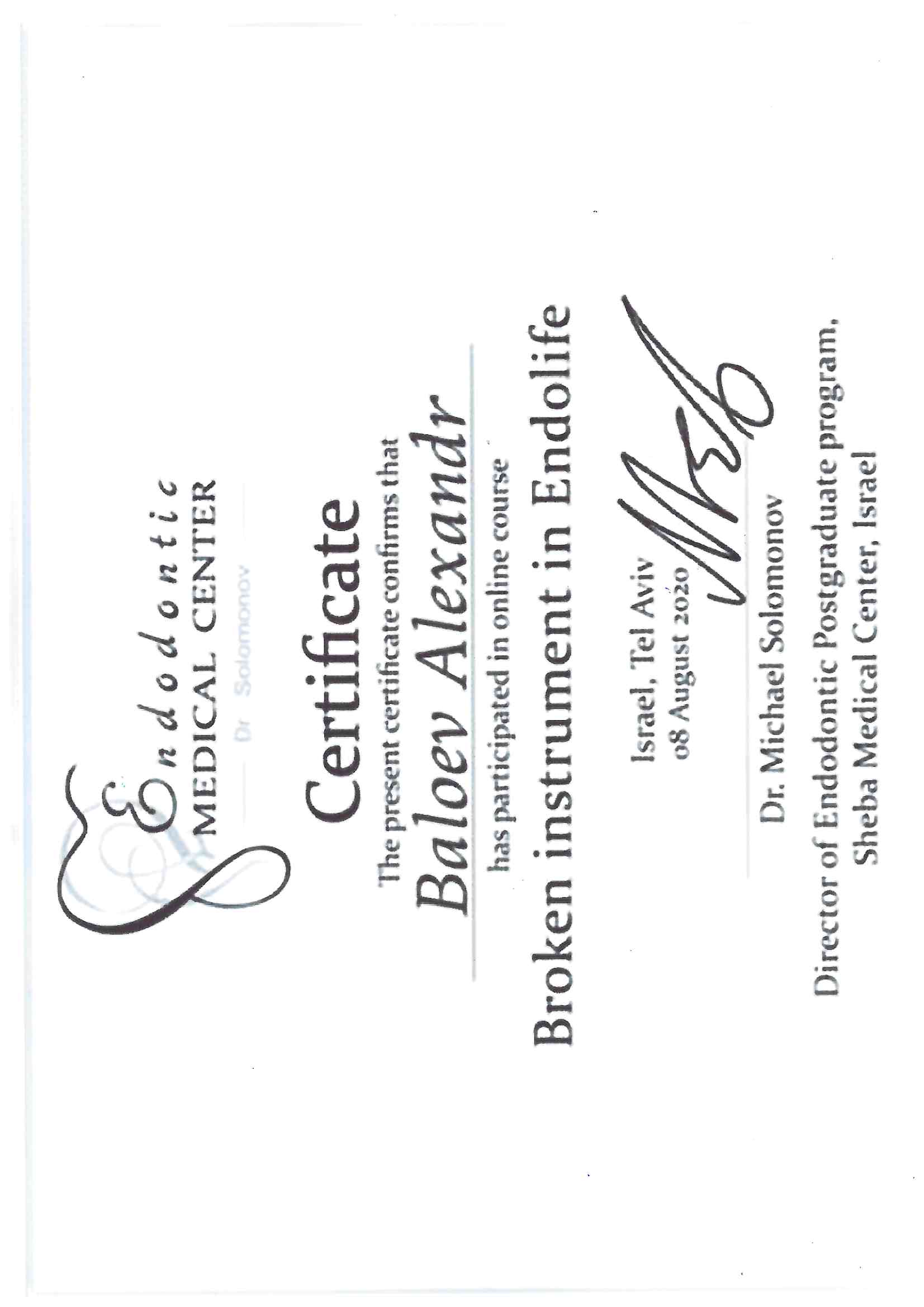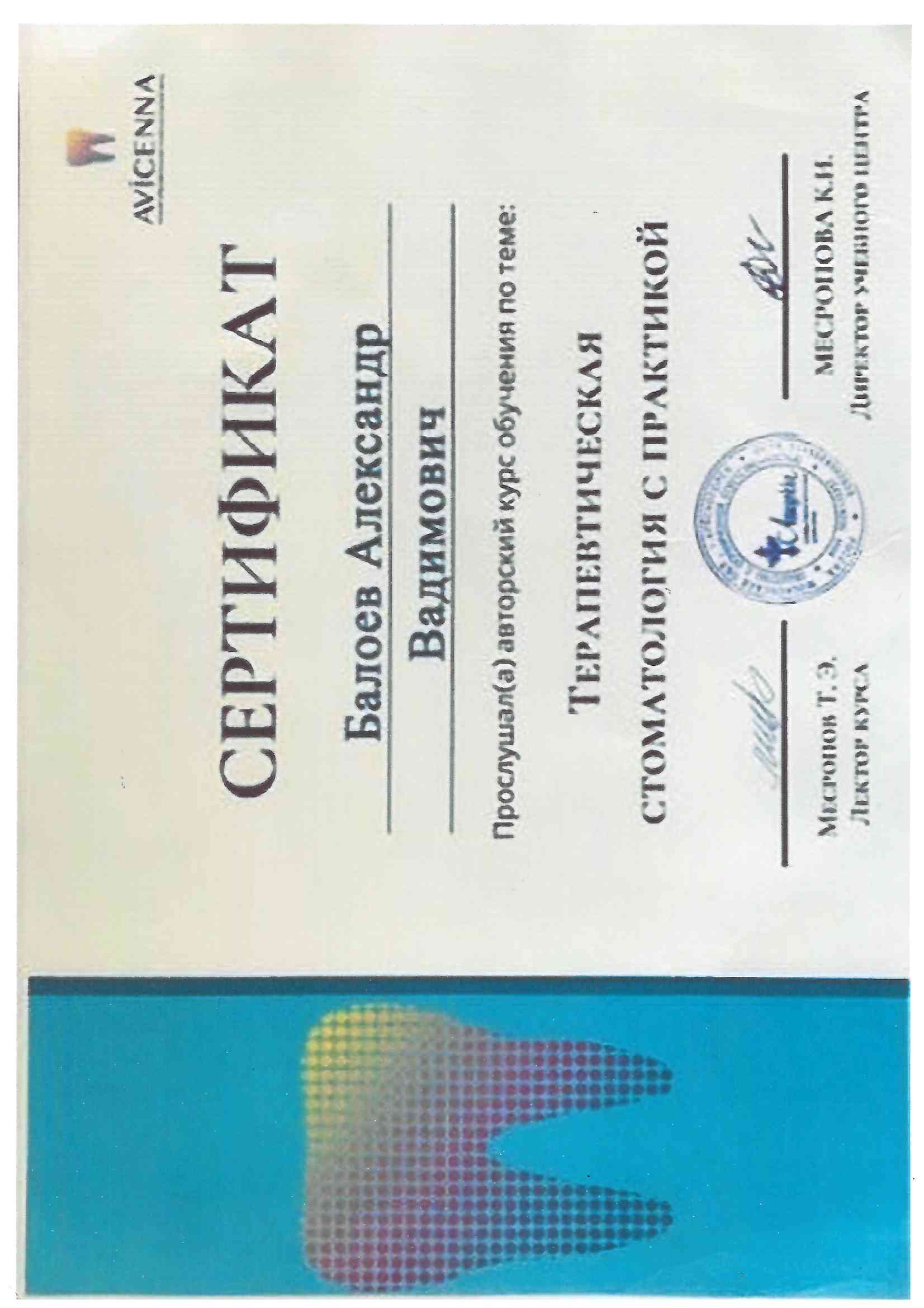 Федеральное государственное бюджетное образовательное учреждение высшего образования «Санкт-Петербургский государственный университет». Первичная специализированная аккредитация от 06.07.2023г по специальности стоматология терапевтическая.