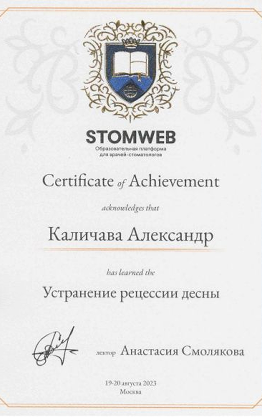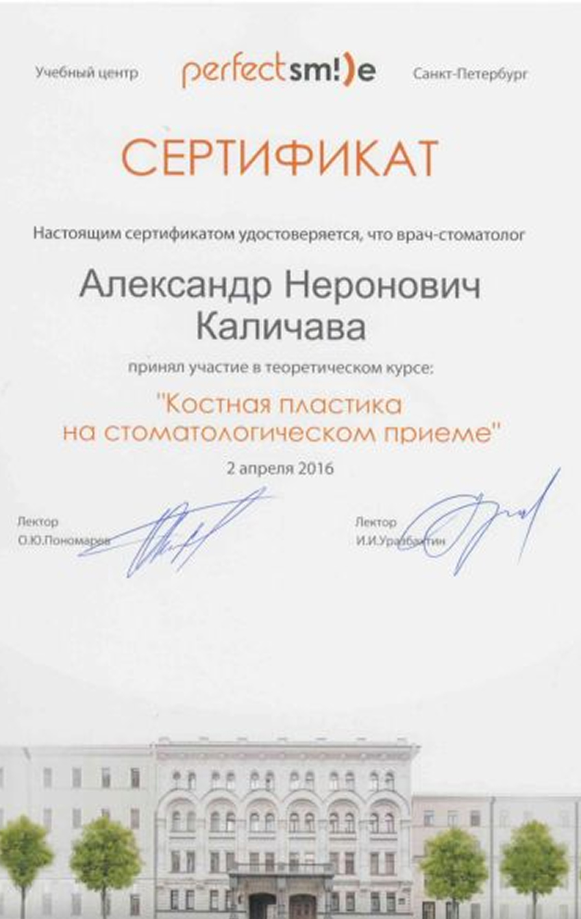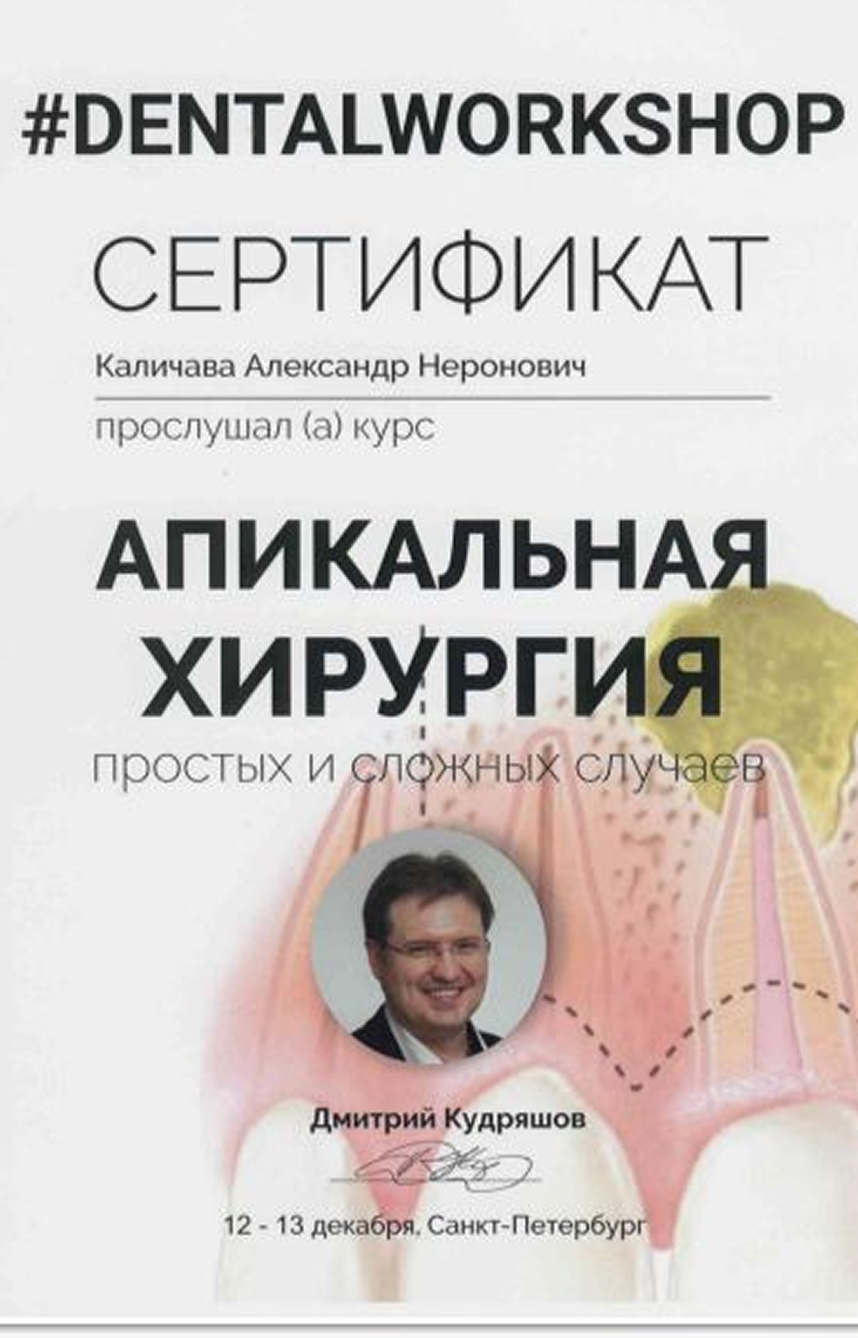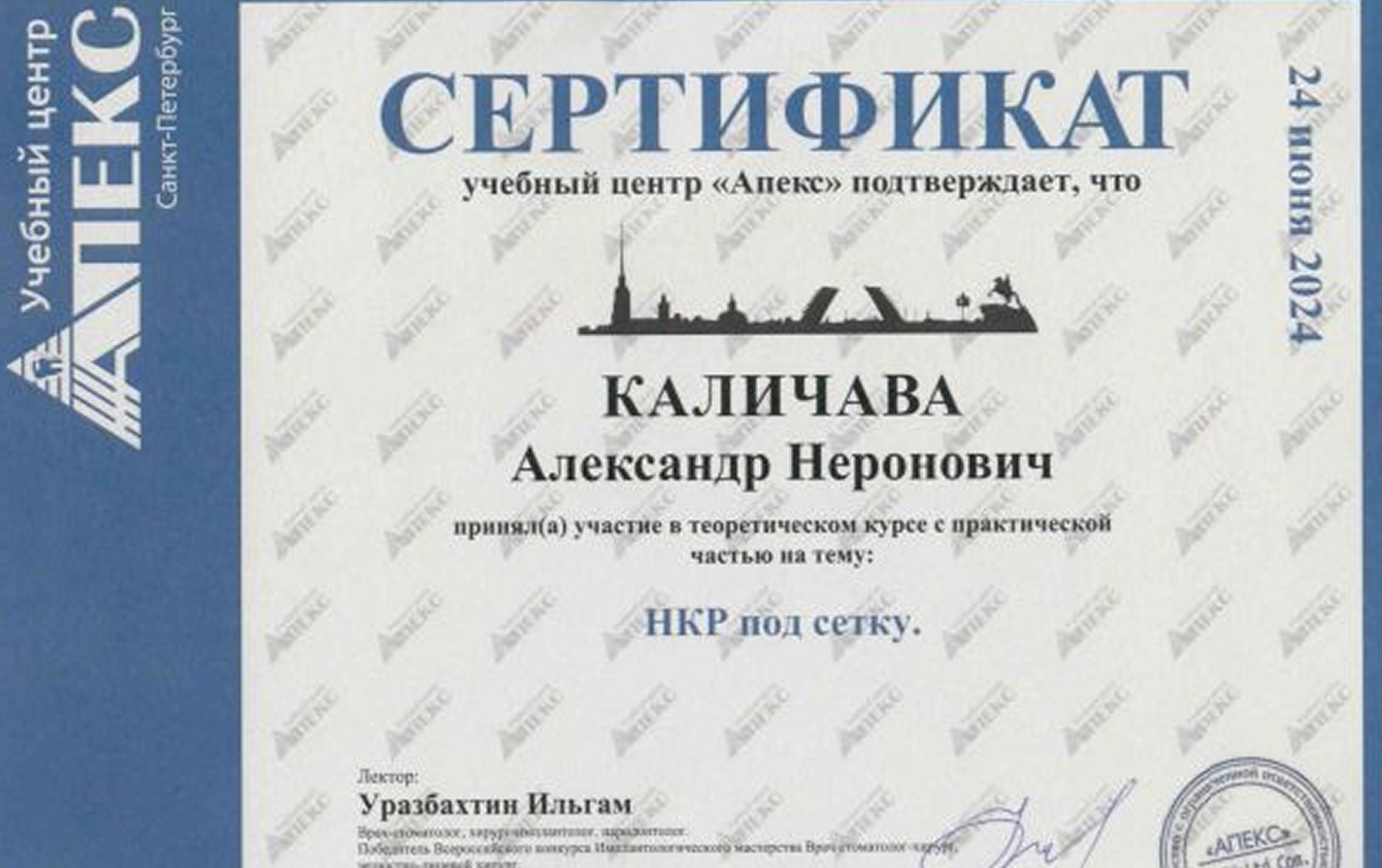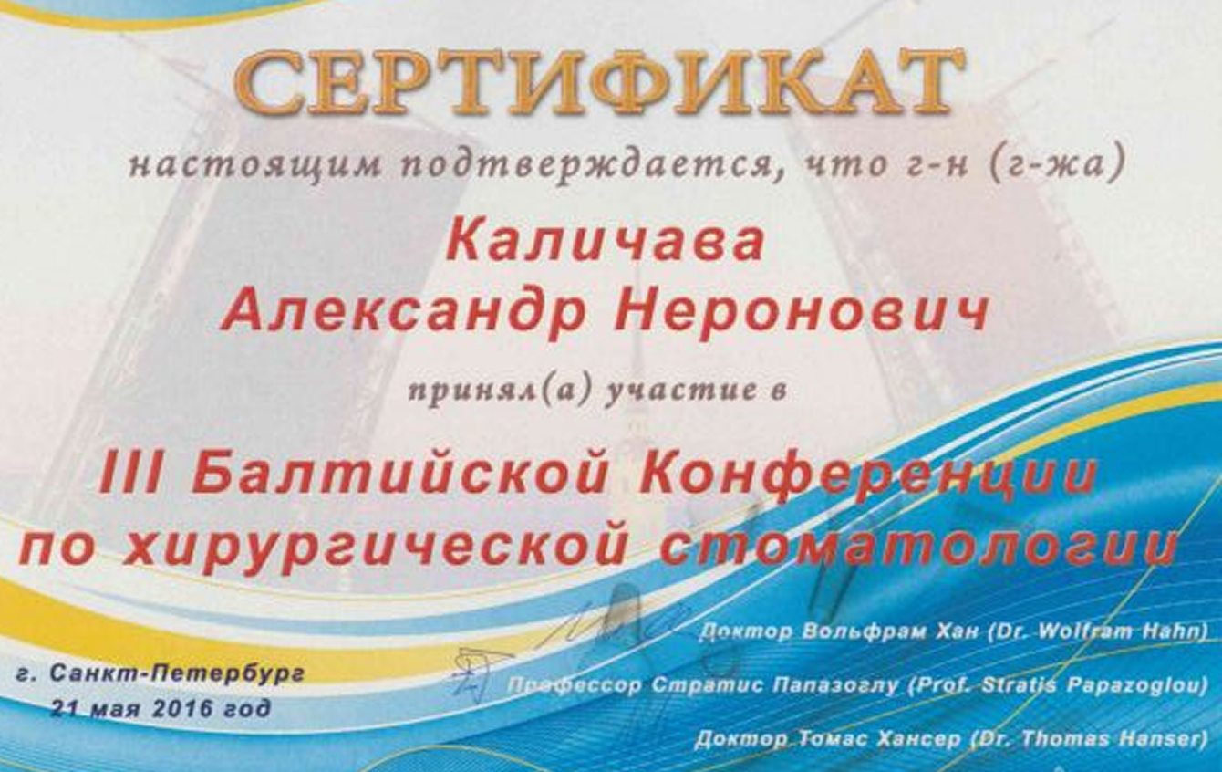 Огромная благодарность Александру Нероновичу Каличава! Он удалённо и быстро все мои восьмёрки. Я думаю, что это лучший стоматолог среди всех, которые я знаю – рекомендую его всем!