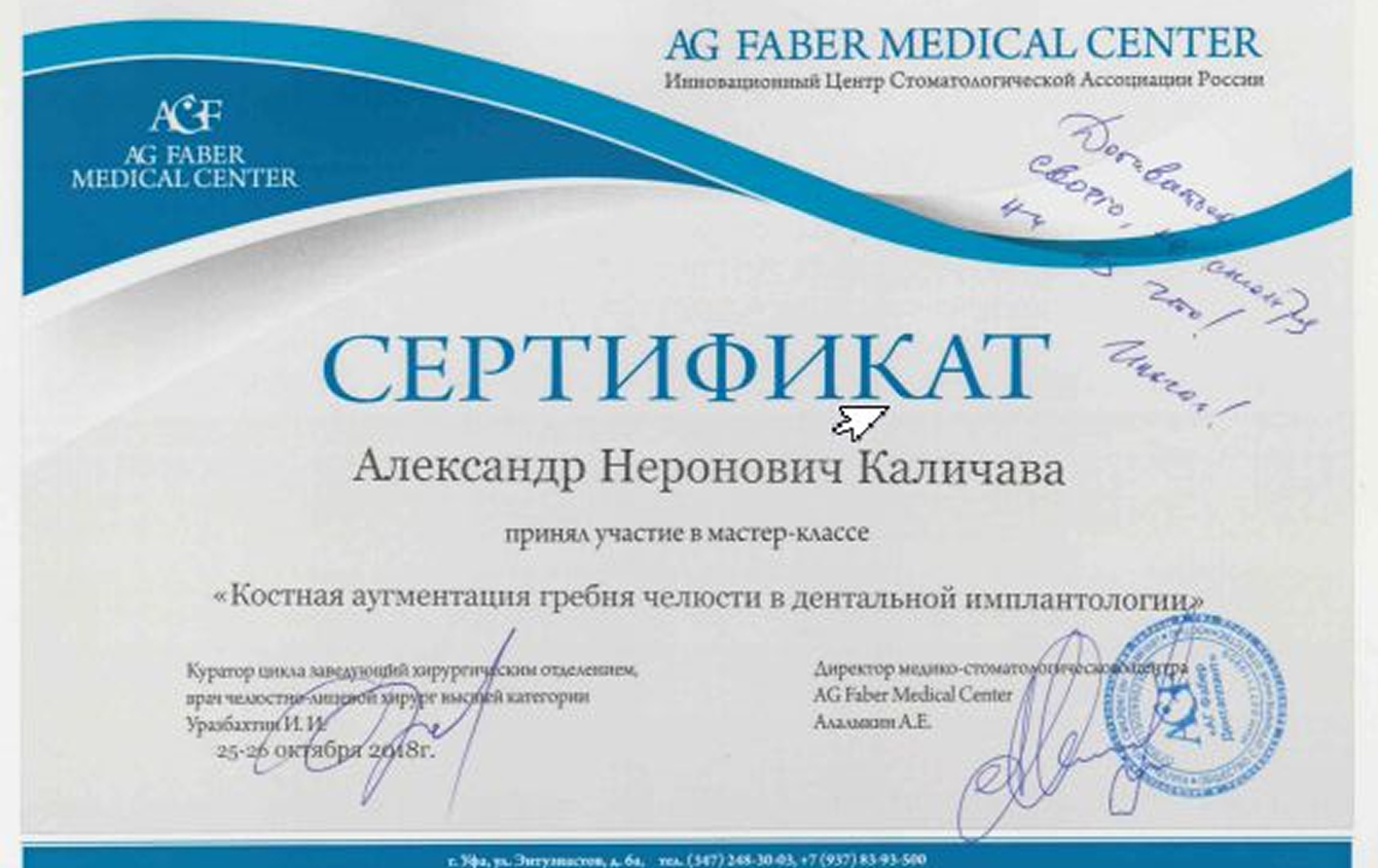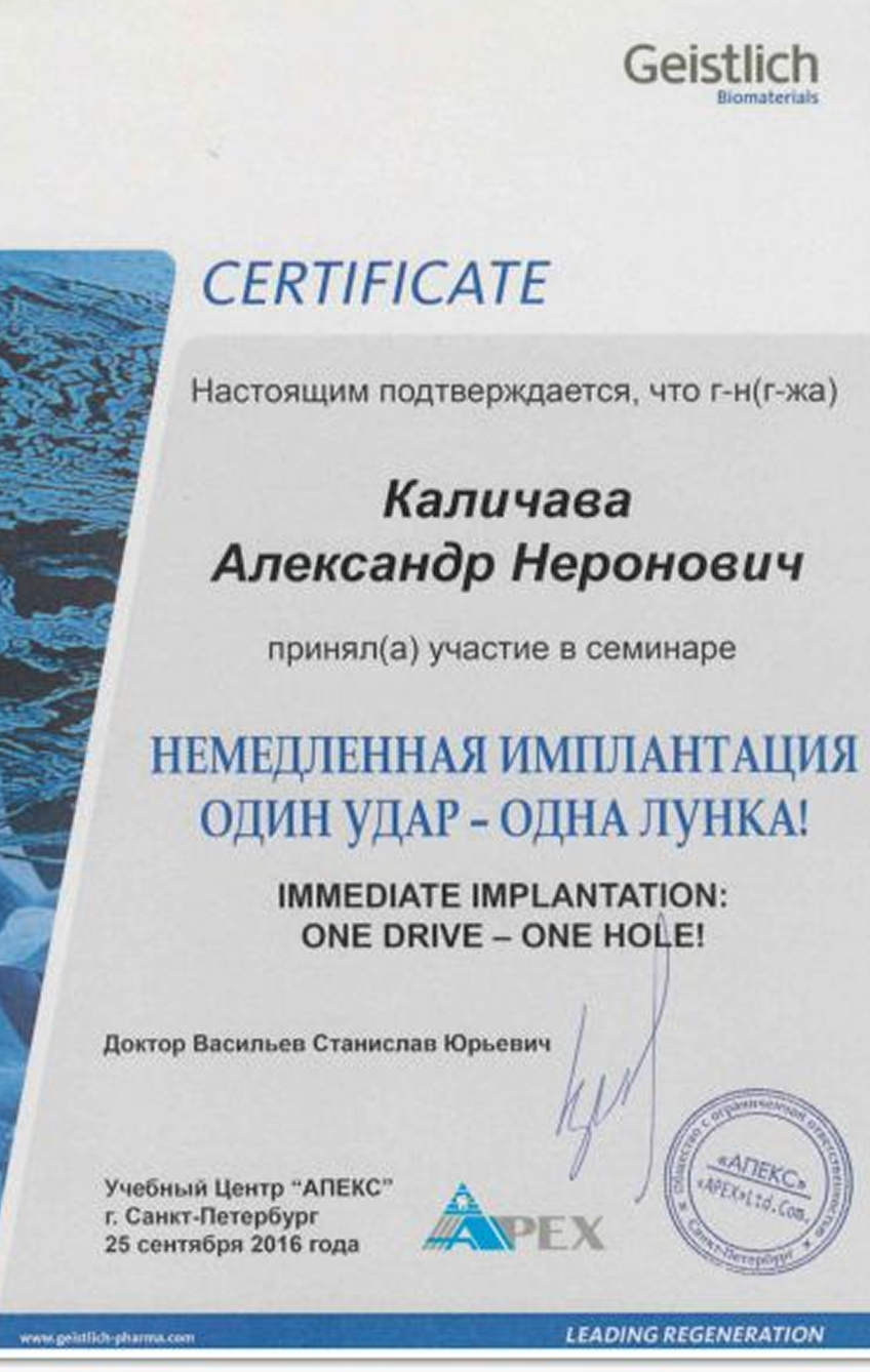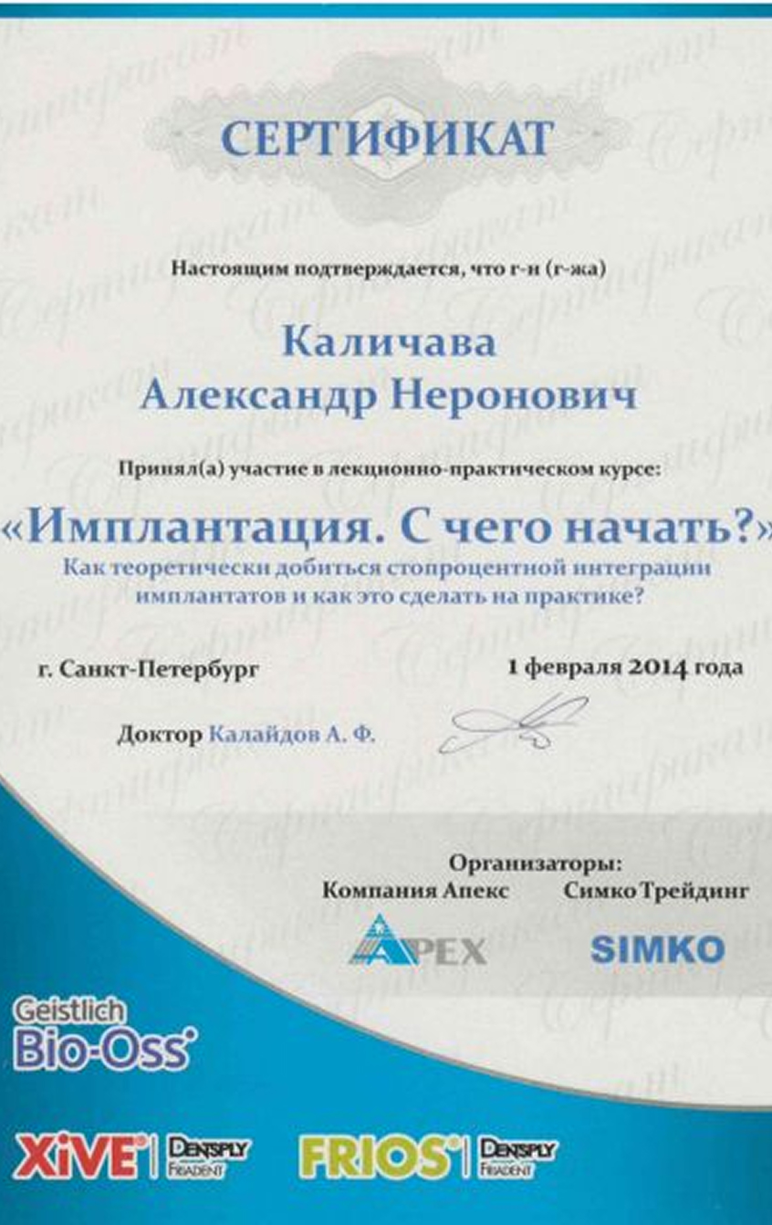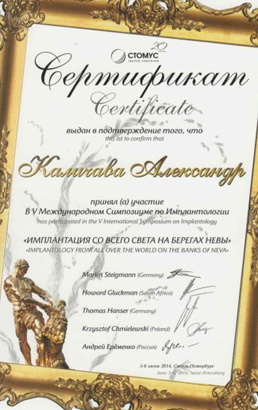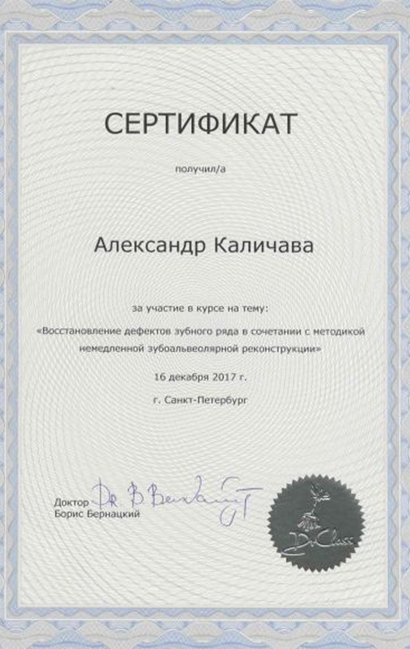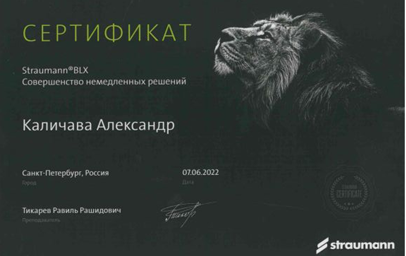 Огромная благодарность Александру Нероновичу Каличава! Он удалённо и быстро все мои восьмёрки. Я думаю, что это лучший стоматолог среди всех, которые я знаю – рекомендую его всем!