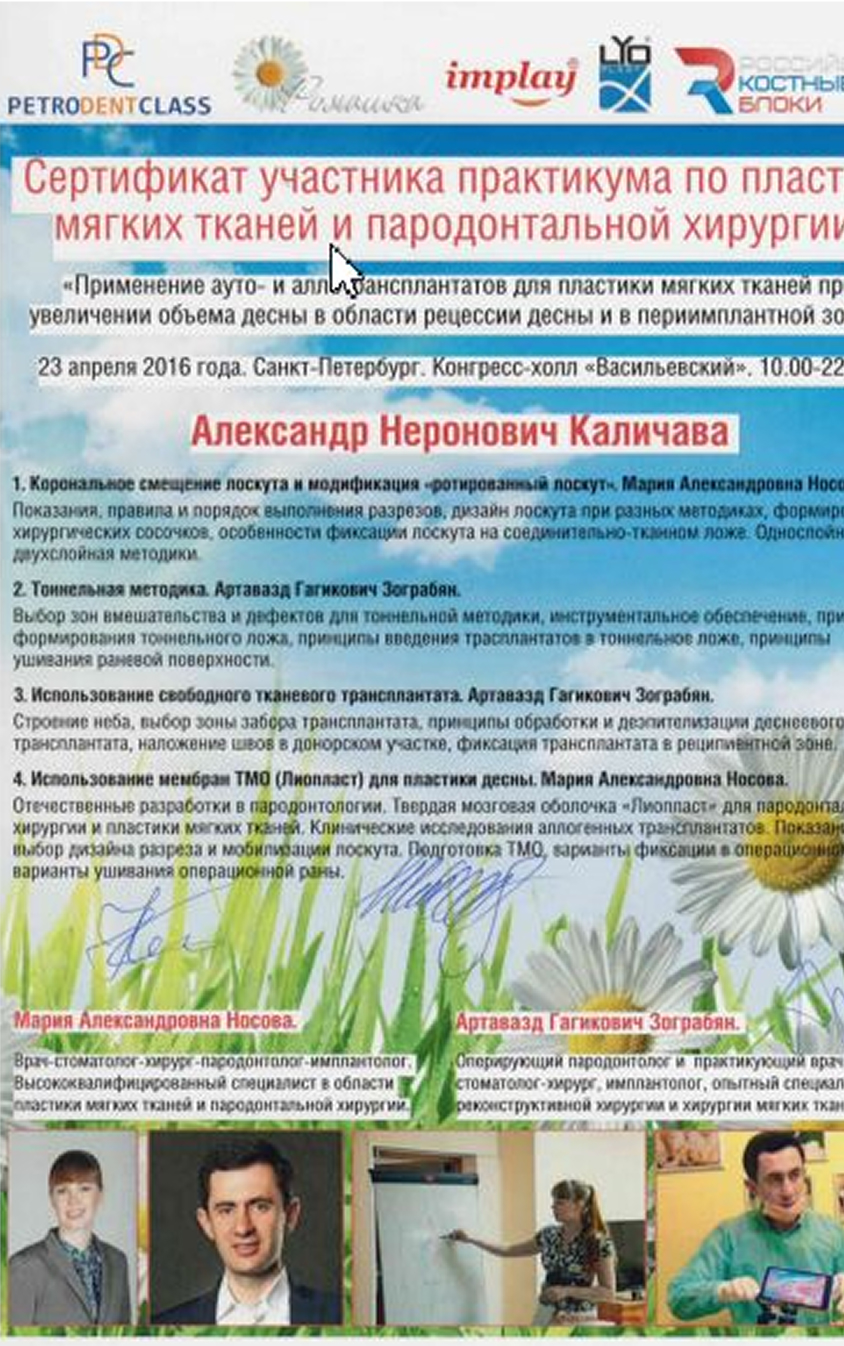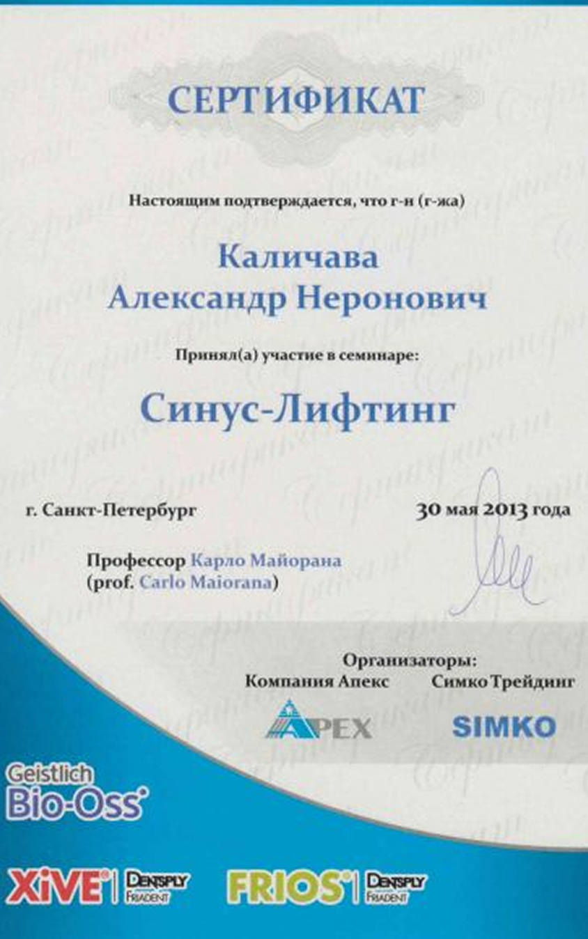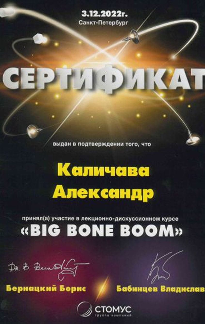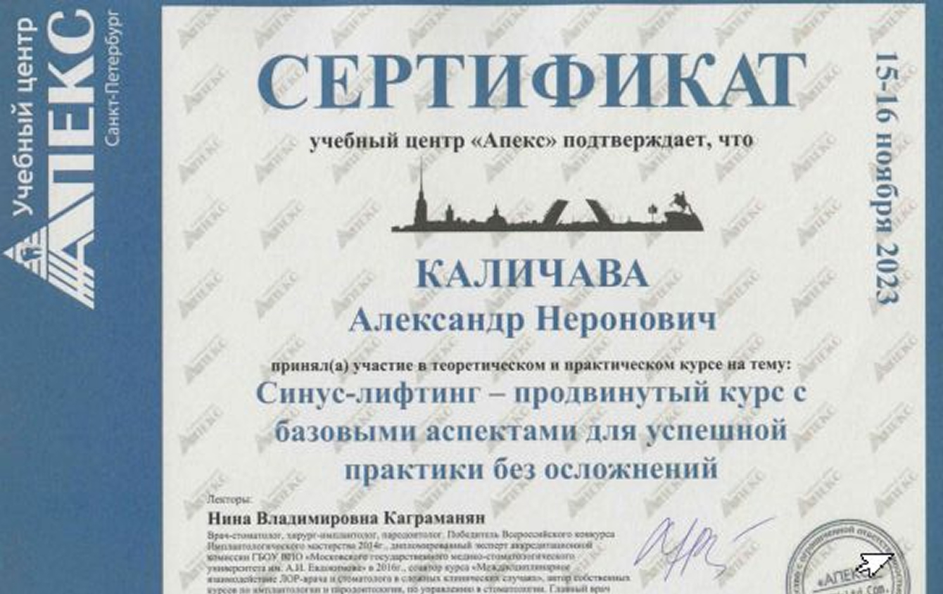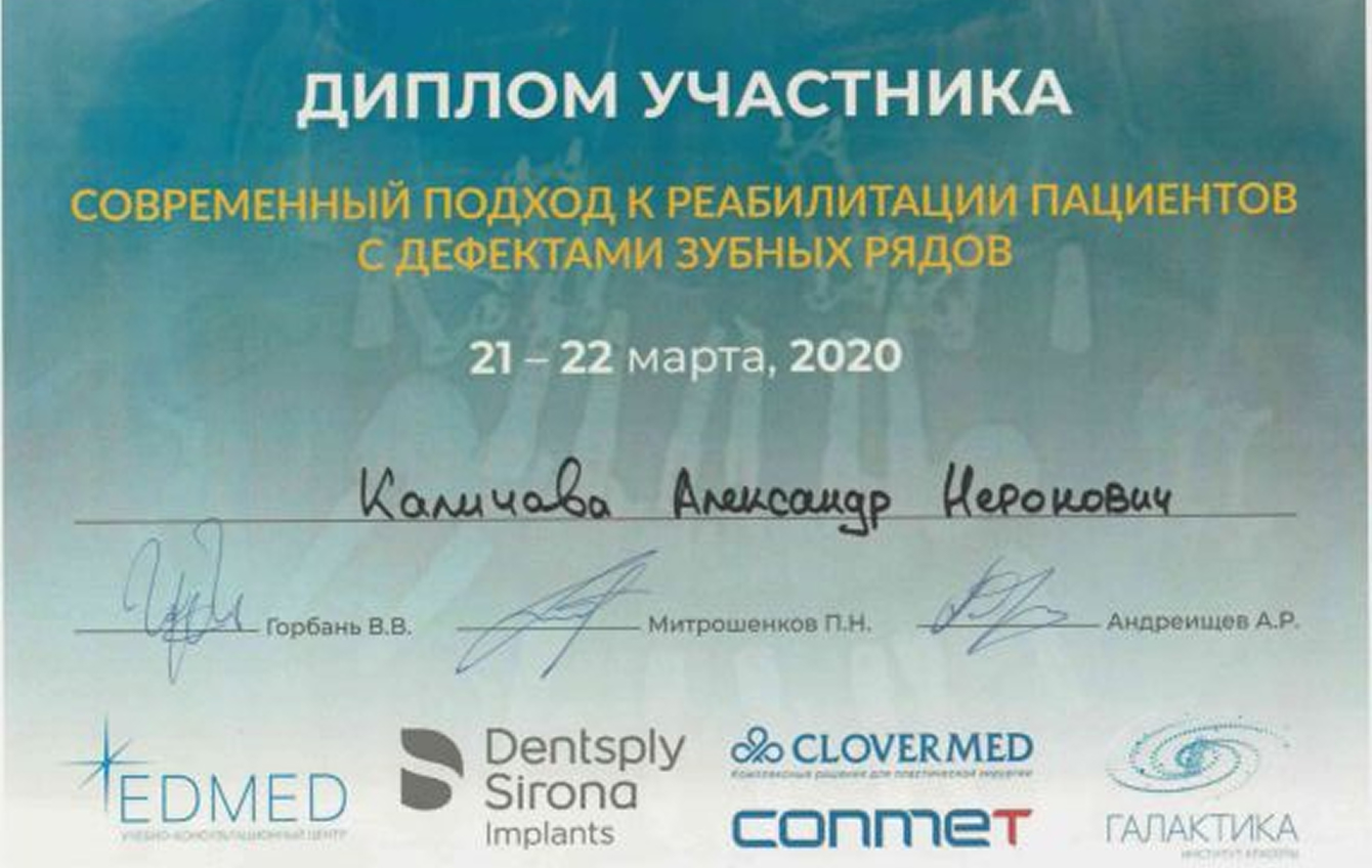Огромная благодарность Александру Нероновичу Каличава! Он удалённо и быстро все мои восьмёрки. Я думаю, что это лучший стоматолог среди всех, которые я знаю – рекомендую его всем!